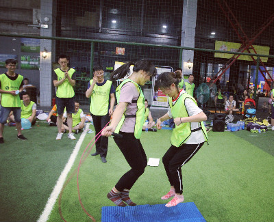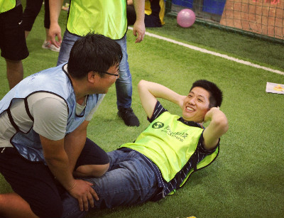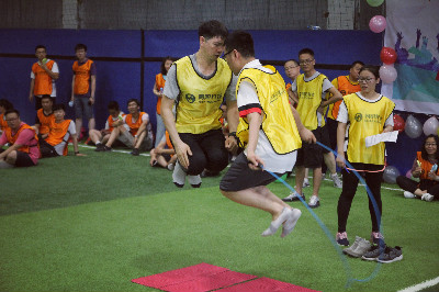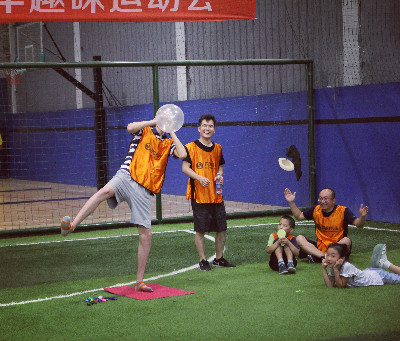黯然销魂的指压板,谁踩谁知道!不过,在紧张的比赛氛围中,脚已经感觉不到疼痛了,只想快一点,再快一点!在这里,协作和速度缺一不可。