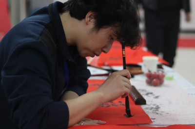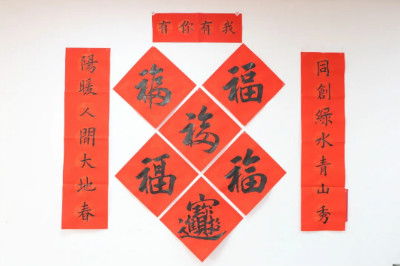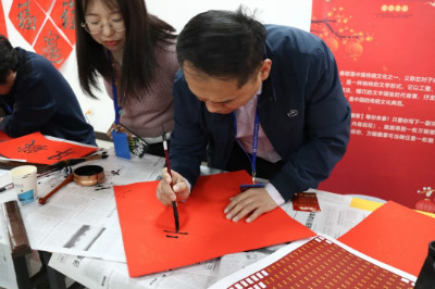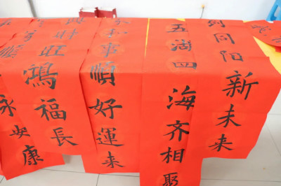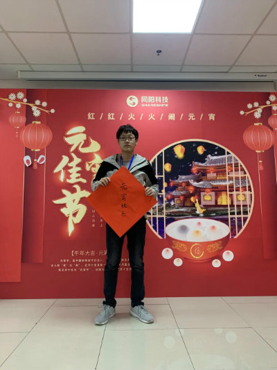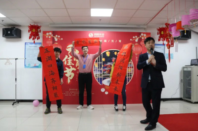 你以为只有灯谜、元宵、游戏和棋牌吗?那你就out了!在这儿,还有咱们传统文化的弘扬! 活动将年俗与书法艺术进行了融合,特邀请公司开发部的邹学良同志为大家现场教学书法。活动现场,几张桌子一字摆开,只见他神情专注,铺纸、蘸墨,挥毫自如。旋即,一副副吉祥喜庆、饱含祝福的对联和福字在他的笔下一一呈现。其他同事见状也跃跃欲试,在邹工的讲解和指导下,很多员工也撸起了袖子过了把书法瘾,把对节日的祝福写进字里。