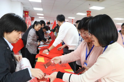 红色的对联、福字和热闹的人群将活动现场映衬得节日氛围十足。饱含节日祝福的对联和福字被员工捧在手里,一张张笑脸洋溢着节日的喜悦和对美好明天的憧憬。