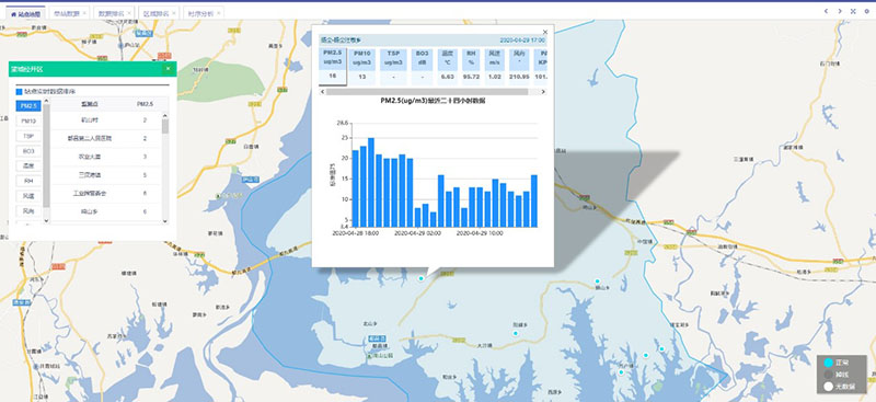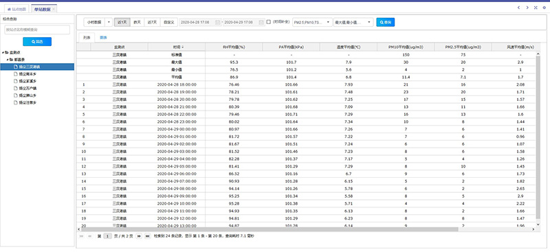 实现了对扬尘监测站的数据采集、对比、分析、展示等功能,对监测站上传的数据进行实时监控、运维记录、对历史数据进行查询,并根据上传的数据按分钟、小时、日、月、季、年均值数据计算,为客户提供数据上的支持和帮助。