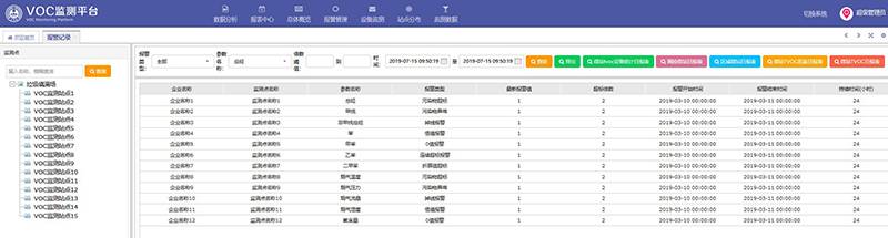平台的主要功能模块包括:实时数据、历史数据、数据趋势、数据质量、站点分布、统计报表、单站报表、数据通比、单站日历、排放分析、报警管理、企业信息、监控交流和系统管理等。