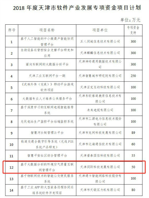 更新时间: 点击:17389 所属栏目:公司新闻 Update Time: Hits:17389 Belong Column:News为进一步落实打造全国先进制造研发基地的定位要求,推进天津市战略新兴产业发展,推动天津市软件产业竞争优势提升、结构优化升级、规模发展壮大,市工业和信息化委组织开展了2018年度天津市软件产业发展专项资金项目申报工作。