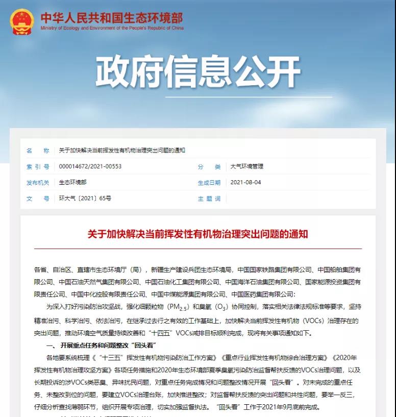 近日,生态环境部发布了《关于加快解决当前挥发性有机物治理突出问题的通知》文件,文件指出:针对长期投诉的涉VOCs类恶臭、异味扰民问题,要对重点任务完成情况和问题整改情况开展“回头看”,推动环境空气质量持续改善和“十四五”VOCs减排目标顺利完成。