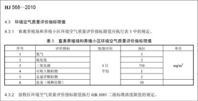 2010年,由生态环境部发布的《畜禽养殖产地环境评价规范》,明确了畜禽养殖场和养殖小区环境空气质量评价指标限值。