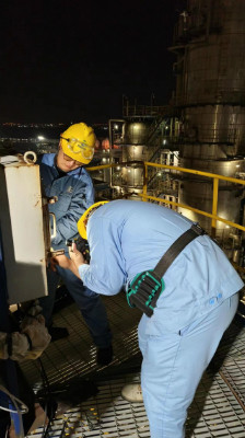 12月17日,石化电仪部突然打来电话,告知由于气温降低,烟气排口处的探头必须要做保温处理,否则探头温度及伴热管线温度达不到要求。石化运维小组共运维CEMS系统8套、VOC设备1套,共计8处平台,当值的两名同事根本无法一天完成所有地方的探头保温工作。组长马越在工作群发起紧急视频会议,询问组内成员各自健康情况并问有谁愿意完成探头保温工作。现阶段,石化运维组的每位同事都或高过低的发着烧,但当听到厂区有重要工作时,均自告奋勇表示愿意前往。中午12点之前,石化运维小组共7名组员于石化厂区集结完毕,待任务分配完成后,全体出动,赶在下班前完成了所有平台探头保温工作,探头温度及伴热管线温度恢复正常。