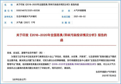 医药制造行业恶臭/异味投诉量:2018 年为 2872 件 2020 年为1985 件;